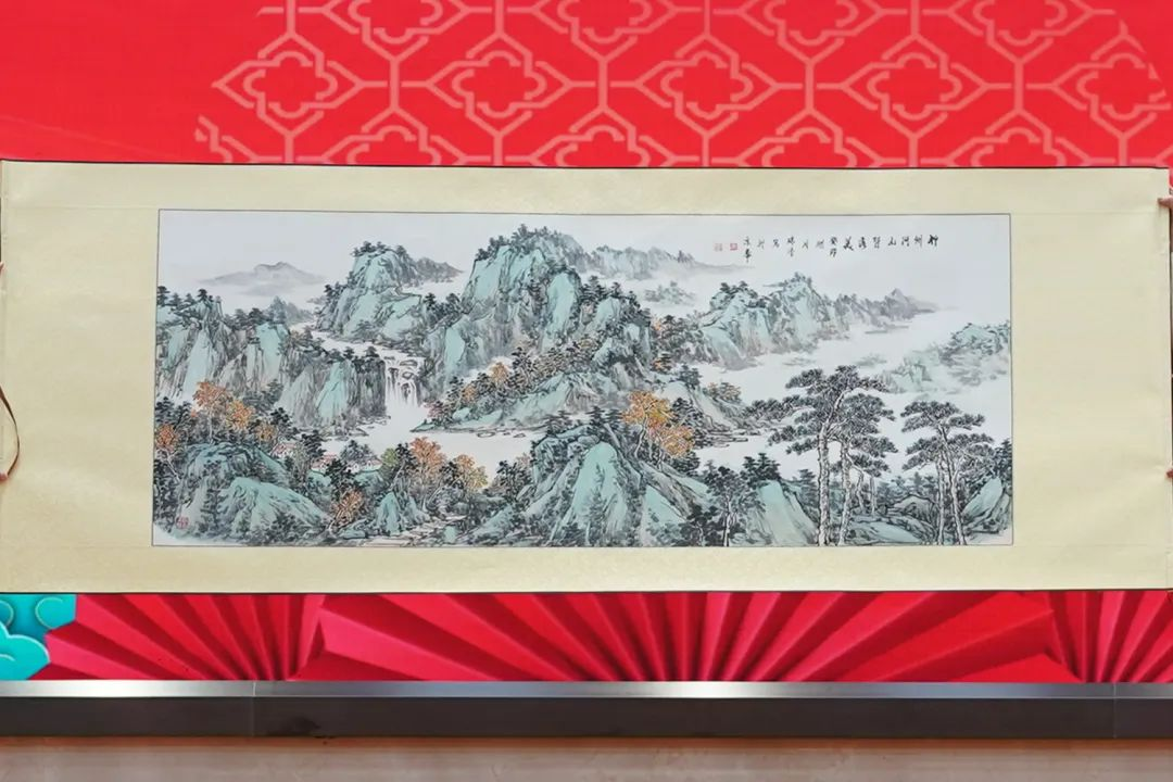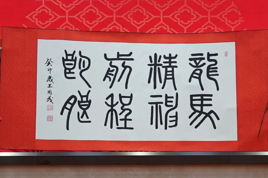 ▲ 現場展示航天老同志創作的部分2024年迎新春書畫作品