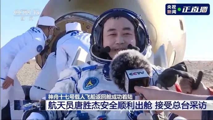 北京時間2024年4月30日17時46分,神舟十七號載人飛船返回艙在東風著陸場成功著陸,現(xiàn)場醫(yī)監(jiān)醫(yī)保人員確認航天員湯洪波、唐勝杰、江新林身體狀態(tài)良好,神舟十七號載人飛行任務(wù)取得圓滿成功。