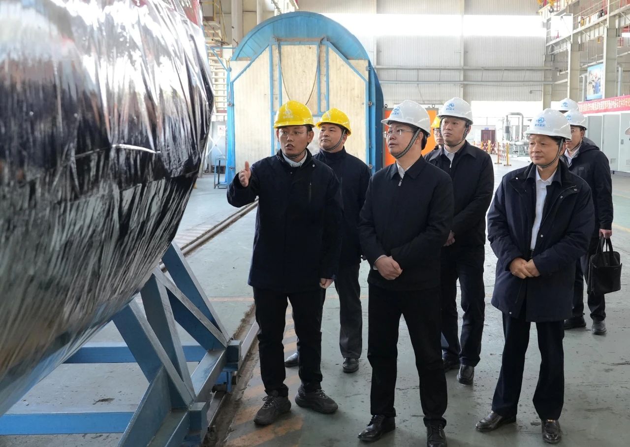 當天,陳錫明一行深入航天晨光一線生產車間和重點實驗室,現場了解航天晨光后勤保障裝備、航天防務配套以及氫能等產業發展情況。