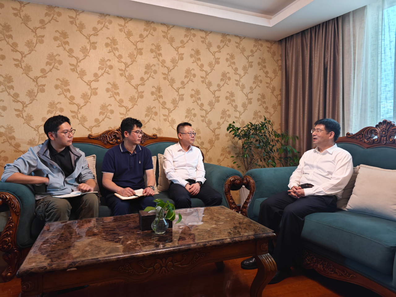 昆明市政府黨組成員王云林,曲靖市委常委侯海峰等領導參加調研。集團公司總部有關部門領導、三院領導參加會見。(文攝/顧航瑜)