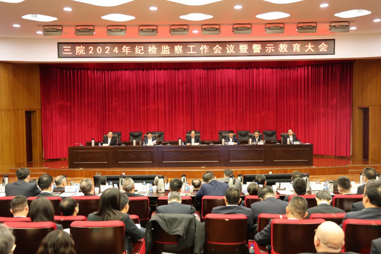 三院領導,院紀委委員,院巡察組組長,院本部各部門負責人,院紀檢監察部、黨委巡察辦全體人員,院屬單位黨政主要負責人及分管業務領導、相關業務部門負責人等分別在三院主會場和各視頻分會場參加會議。
