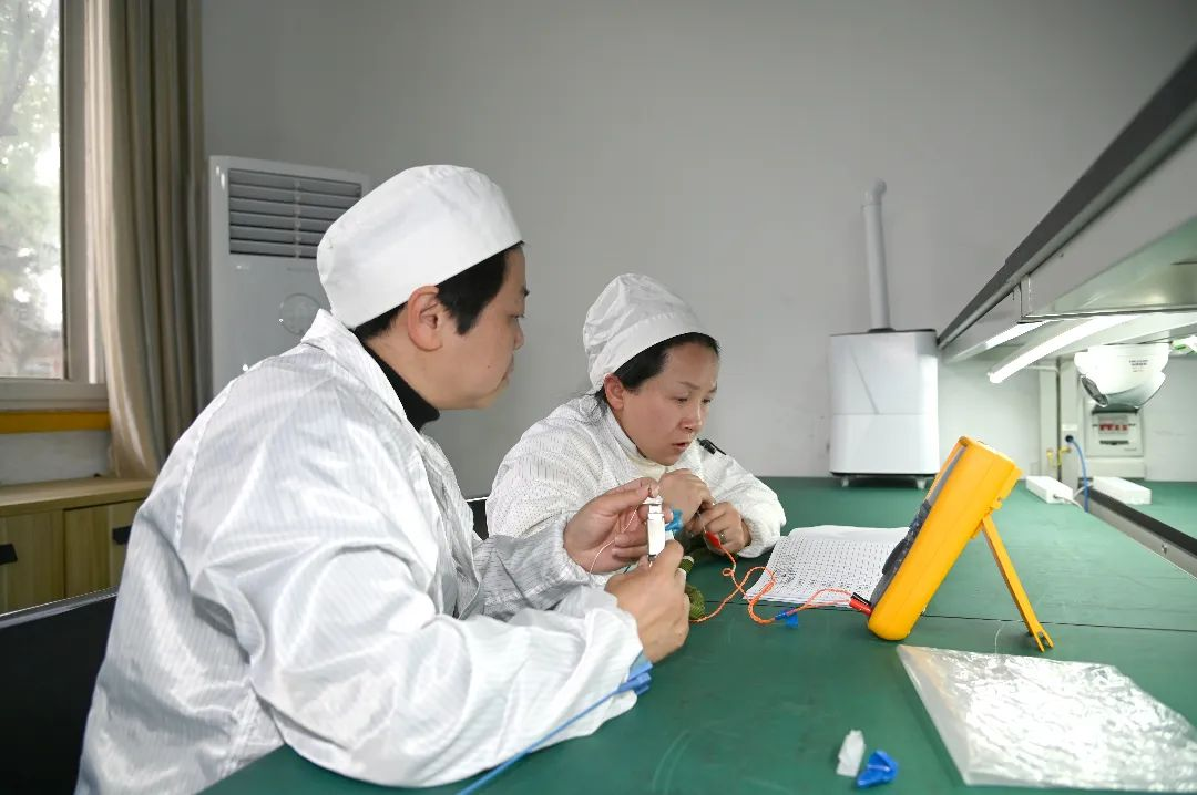 大年初三開始,為保任務節點、提前做好生產準備,險峰公司部分職工走上崗位,開啟工作模式。圖為設計師小范和小程在抓緊完善產品設計方案。(圖文/張玉蓮)