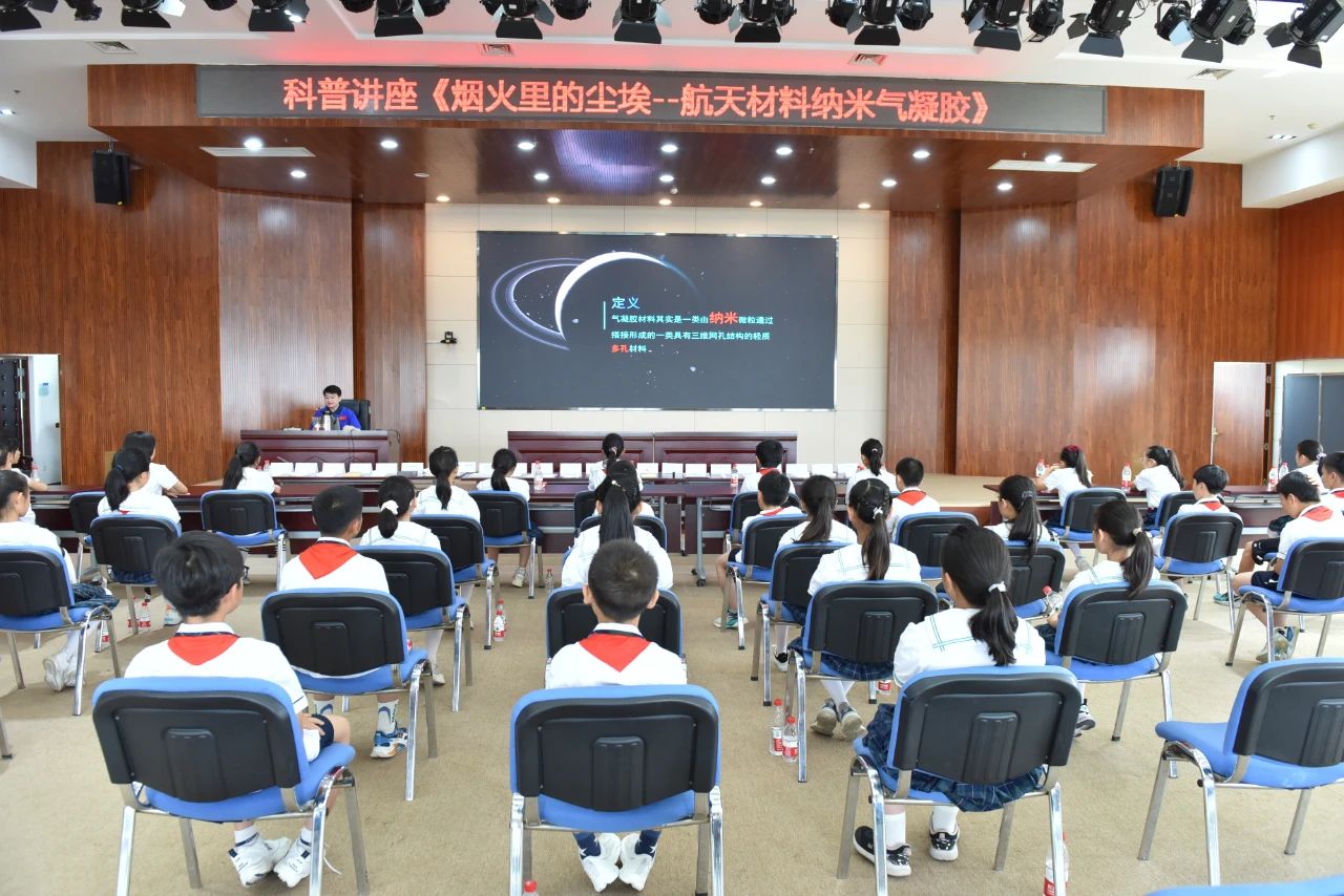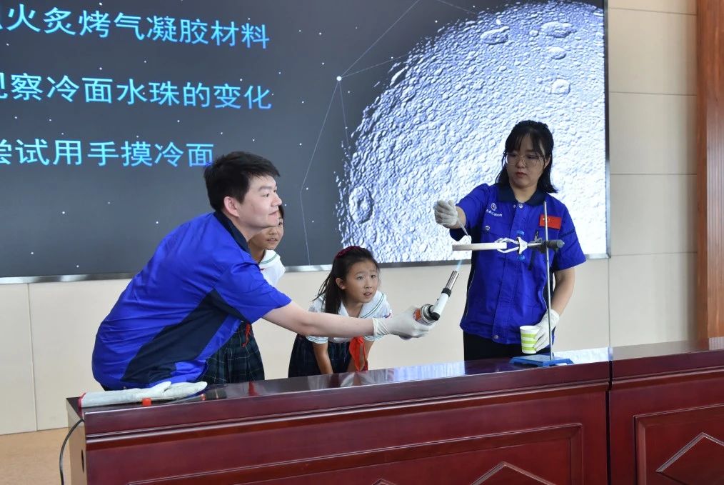 升旗儀式結束后,306所青年科技工作者廖博士為云崗小學師生帶來了一堂題為《煙火里的塵埃——航天材料納米氣凝膠》的科普課。課堂上,通過趣味講解、實物展示、模擬試驗、互動問答等形式,對這種已經(jīng)成功運用于長征五號運載火箭、嫦娥四號月球探測器等航天器上的新型航天材料進行了現(xiàn)場揭秘,并為同學們介紹了氣凝膠研制團隊不為人知的研發(fā)故事。互動環(huán)節(jié),學生們走上講臺親自操作實驗儀器,零距離驗證氣凝膠材料的優(yōu)異性能。在充滿樂趣的課堂上,同學們學習了航天知識,感受到航天科技的魅力。