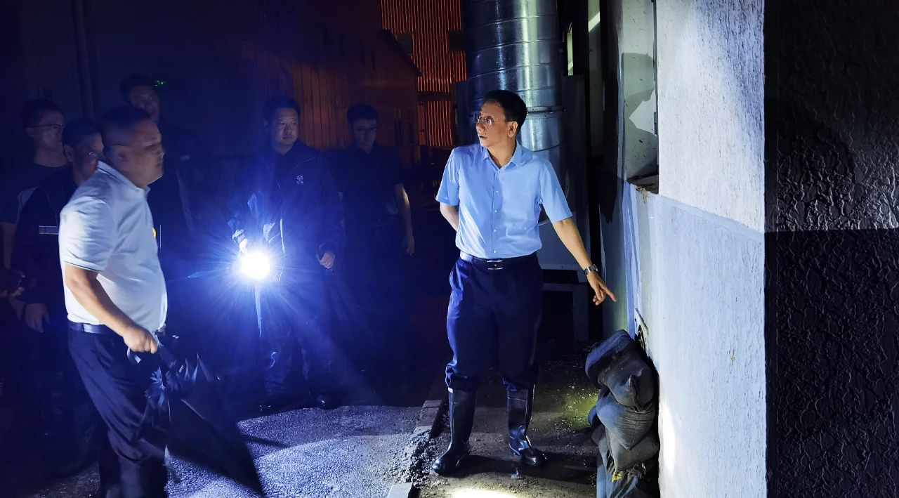 午夜時分,三院領導帶領防汛應急小組成員奔赴云崗工業區和重點防汛區域,巡查汛情,查勘風險。