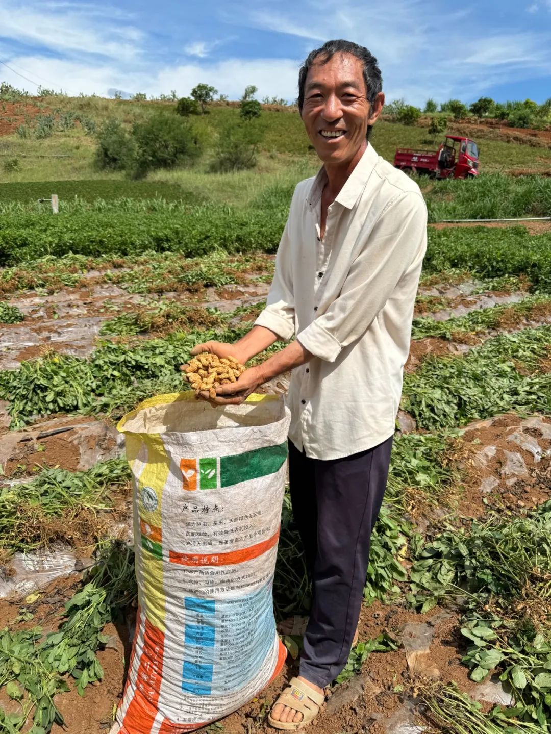 圖為9月12日,在云南省昆明市東川區銅都街道梨坪村,村民許汝平手捧剛收獲的七彩花生。