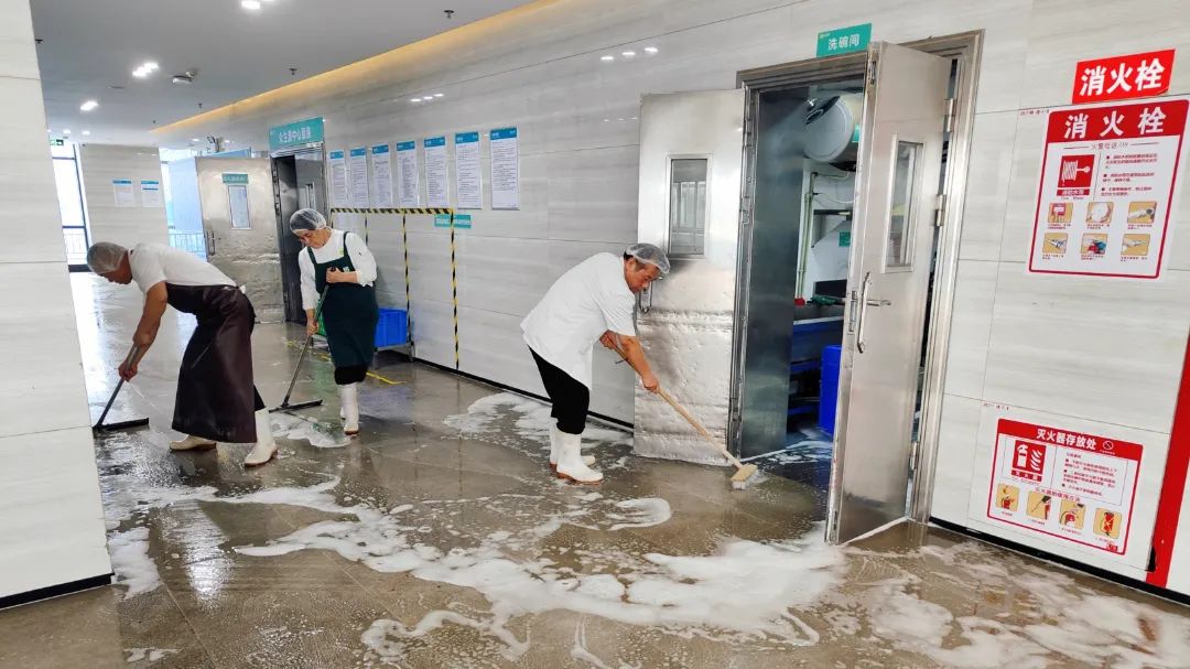 在穩(wěn)定生產(chǎn)的背后,也始終離不開默默堅(jiān)守崗位后勤人員的付出。安全保障部協(xié)調(diào)安保、物業(yè)、后勤等服務(wù)保障人員集中清洗生活用水水箱,保證水質(zhì)達(dá)標(biāo)。對園區(qū)消防系統(tǒng)例行檢查,現(xiàn)場排查故障,保證消防系統(tǒng)正常運(yùn)轉(zhuǎn)。物業(yè)、安保常態(tài)化服務(wù),提供整潔、舒適、安全的工作環(huán)境。食堂提前備餐,準(zhǔn)時(shí)準(zhǔn)點(diǎn)供應(yīng)可口的飯菜。