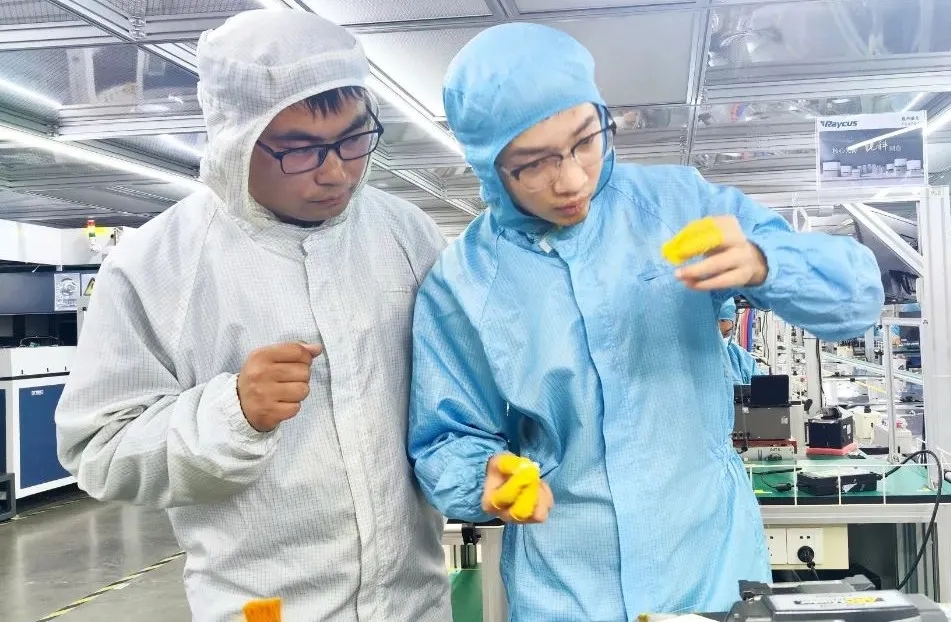 在決勝全年目標任務的關鍵時期,銳科激光制造中心找準“發力點”,仔細梳理生產過程中遇到的瓶頸問題,認真分析原因并提出解決方案,通過夯實工藝技術、嚴控產品質量、合理安排生產,確保產品高質量按期交付。圖為職工在仔細檢查光纖的外觀。(圖文/王青霞  鄭涯焱鑫)
