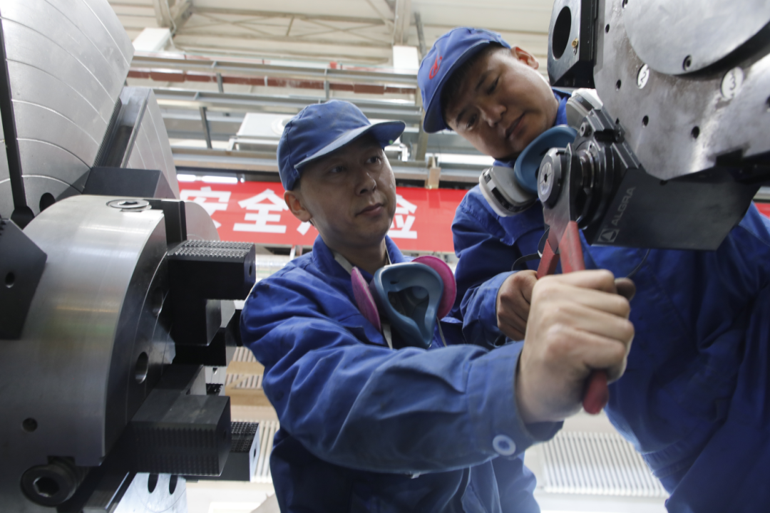 金崗重工新能源裝備制造中心冷作工組職工嚴格按照操作流程與圖紙尺寸,對鋼板進行測量、劃線與折彎,力求保質保量圓滿交付生產任務。
