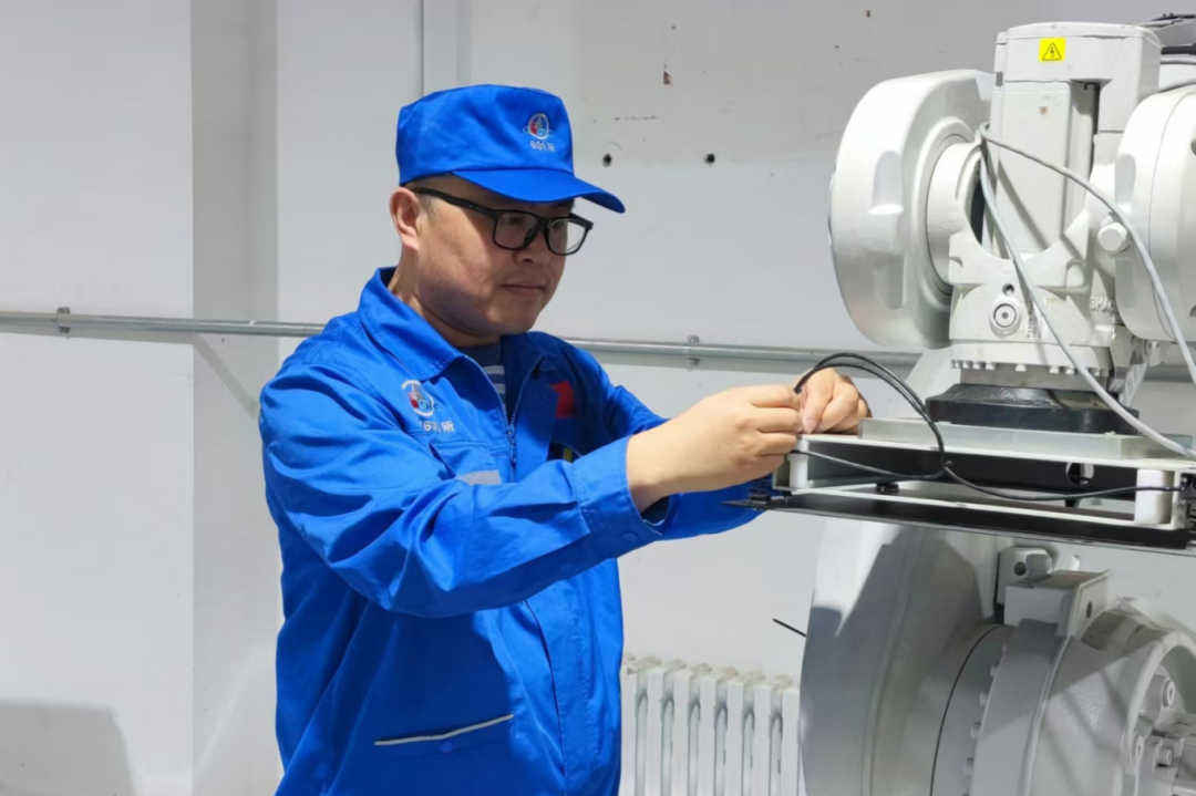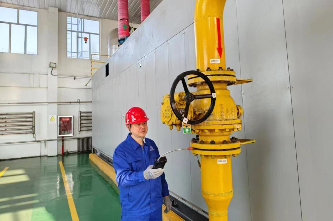 六院科保動力分公司水暖運行組職工正在檢測廠區(qū)供暖系統(tǒng)燃氣管道,確保供暖運行安全,保障六院科研生產不受氣溫驟降的影響。