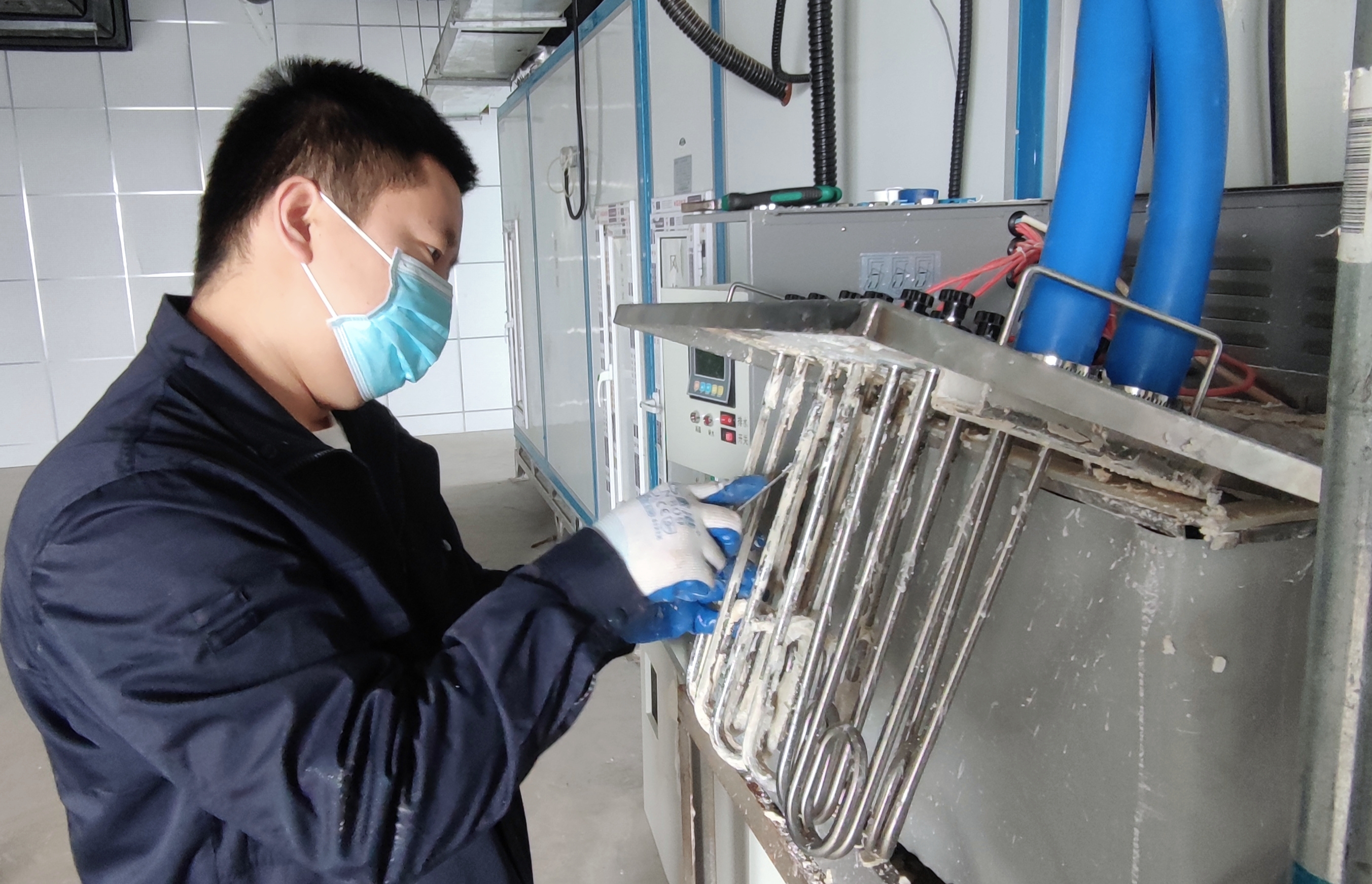 在生產(chǎn)基地,車間職工積極克服作業(yè)空間狹窄等不利條件,高質(zhì)高效地做好空調(diào)機(jī)組、供暖設(shè)備定期巡視檢查、維護(hù)保養(yǎng)工作,切實優(yōu)化送風(fēng)供暖效果。
