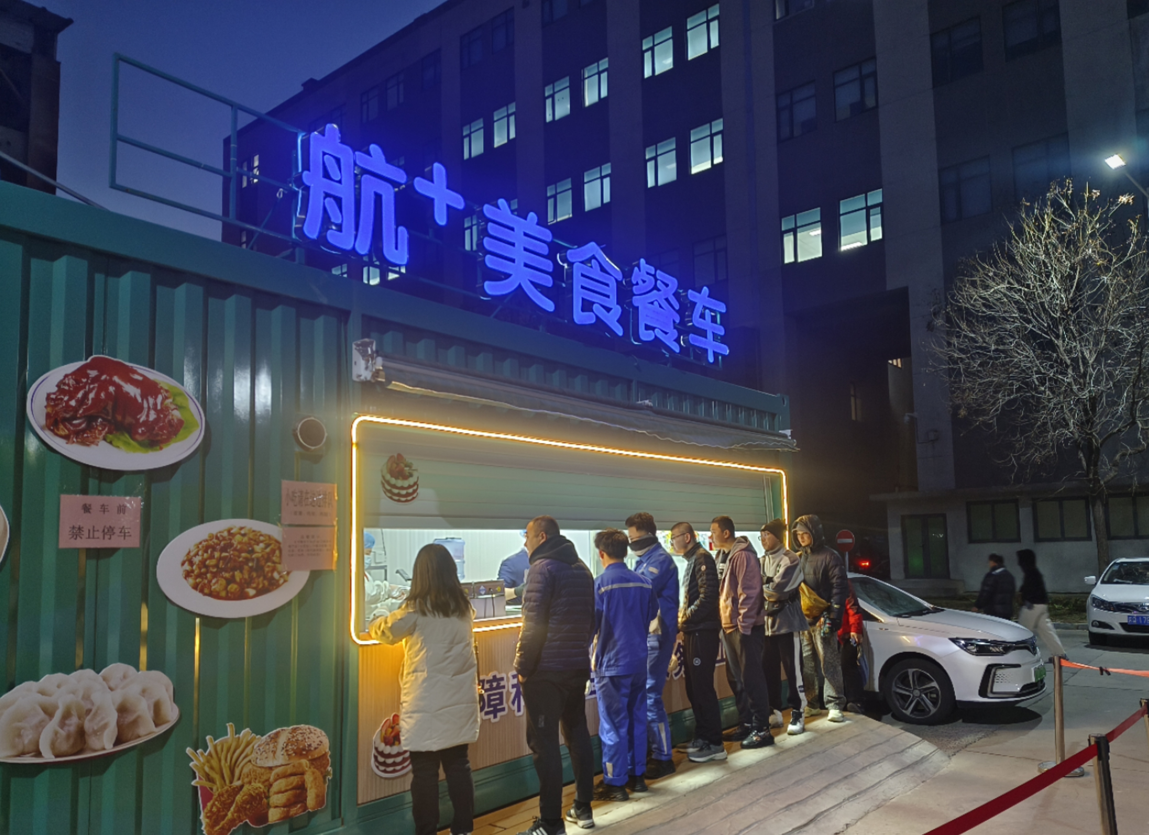 進(jìn)入四季度以來,科研生產(chǎn)任務(wù)繁重,為更好地保障職工用餐服務(wù),工業(yè)區(qū)內(nèi)1號餐車供餐時間延長至20點,主要供應(yīng)鐵板炒飯、炸貨、飲品等,在切實滿足職工多元化用餐需求的同時,也驅(qū)散了職工加班的疲憊與冬日的寒意,為接下來的工作充電蓄能。每當(dāng)夜幕降臨,1號餐車依然燈火通明,守候著工業(yè)區(qū)內(nèi)奮力拼搏的二院職工。(文/郭蕊)