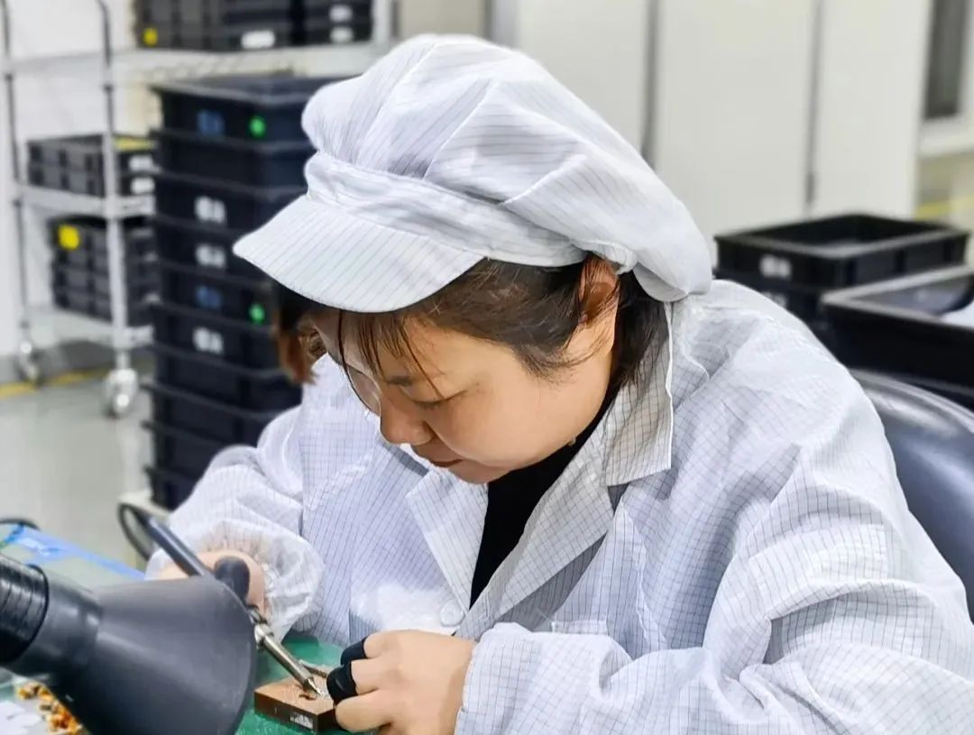 貼片環節則又是另一場驚心動魄的戰斗。面對完全陌生的設備,雷師傅臨危不亂、細心調試,調試出一系列定制化的工藝參數,成功完成芯片的精確對接。經測試,完全滿足了高標準的貼片要求。