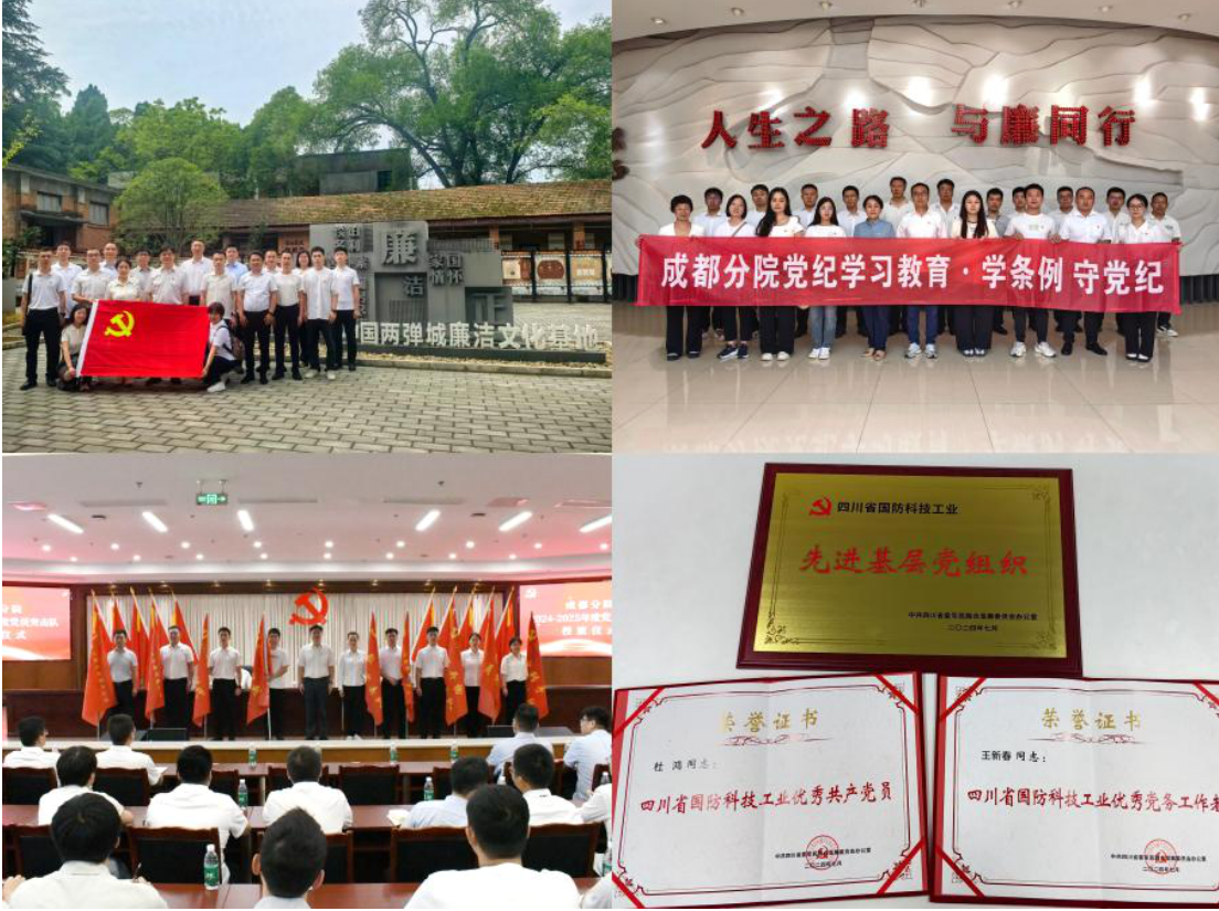 成都分院始終將黨的建設擺在首位,黨委帶領13個黨支部高質量開展黨紀學習教育,通過精心組織參觀警示教育基地,舉辦漫畫解讀《中國共產黨紀律處分條例》展、拍攝微視頻等,嚴的基調、嚴的措施、嚴的氛圍進一步強化。1個黨支部、2名黨員獲評四川省國防科技工業“兩優一先”表彰,省級榮譽獎勵實現“零的突破”10支黨員突擊隊攻堅克難,實現業務工作和黨建工作有效融合。