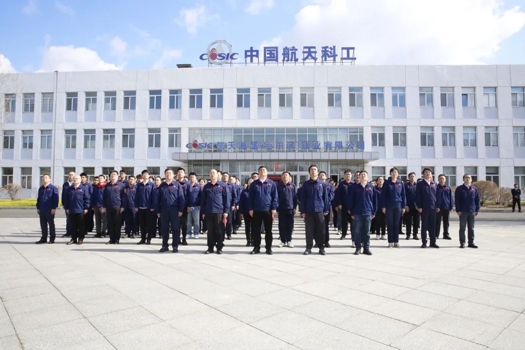 8點30分,國旗護衛隊邁著鏗鏘有力的步伐,護送鮮艷的五星紅旗,昂首闊步走向升旗臺。伴隨著雄壯的國歌和航天科工之歌,國旗、集團公司司旗和三院院旗冉冉升起,在場干部職工莊嚴肅立,行注目禮。