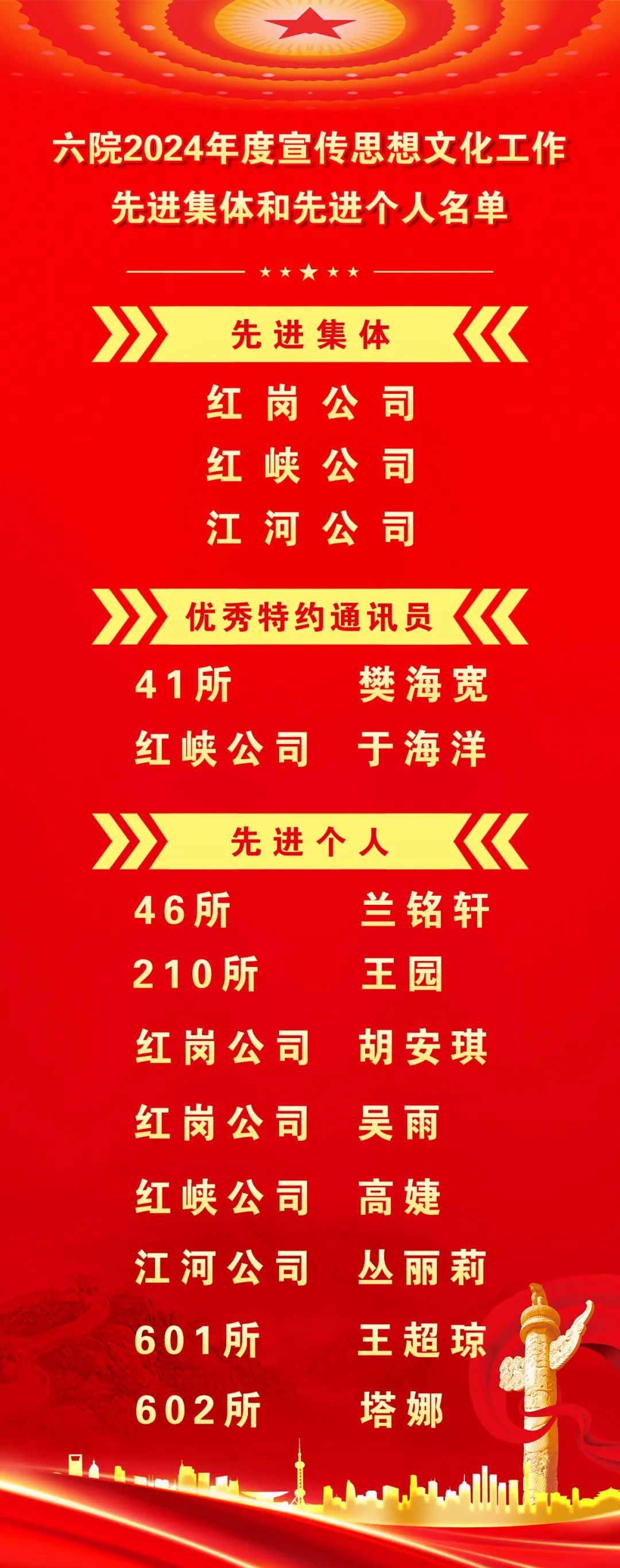 會上,觀看了六院宣傳思想文化工作會專題片,通報了兩年來全院宣傳思想文化系統(tǒng)獲得的集團(tuán)公司級及以上榮譽(yù),表彰了六院2024年度宣傳思想文化工作先進(jìn)集體、先進(jìn)個人。先進(jìn)集體和先進(jìn)個人代表作了現(xiàn)場交流。