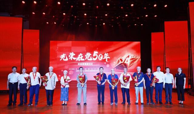 紀念章頒發(fā)儀式上,與會領導向老黨員頒發(fā)了“光榮在黨50年”紀念章,并向老黨員致以崇高敬意。