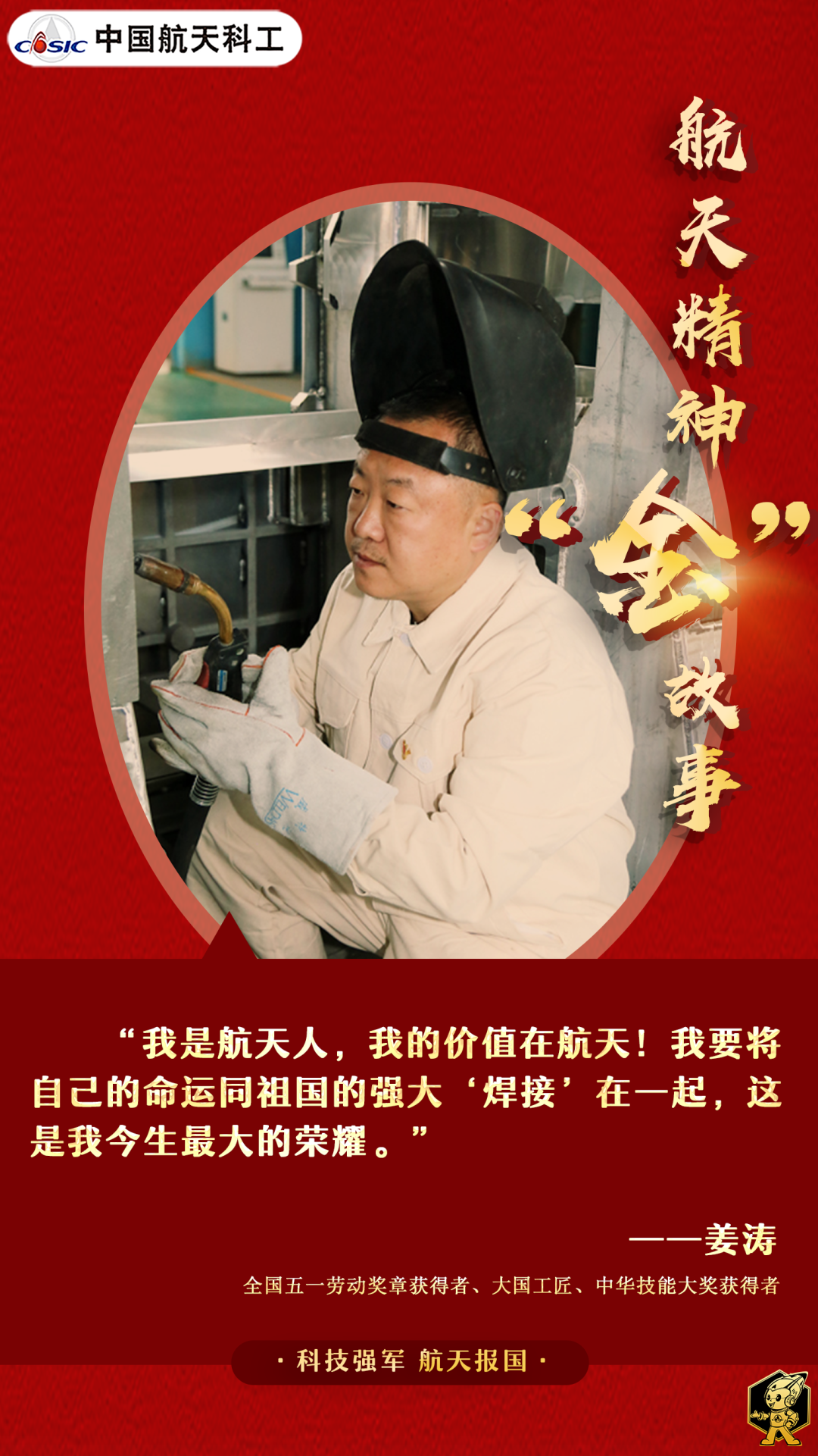 姜濤,是航天江南航天天馬的一名工人,當選第十三屆全國人大代表,榮獲全國五一勞動獎章,享受國務院政府特殊津貼。37年來,他手執焊槍,一次次攻破技術難關,焊接產品多次接受黨和人民檢閱。