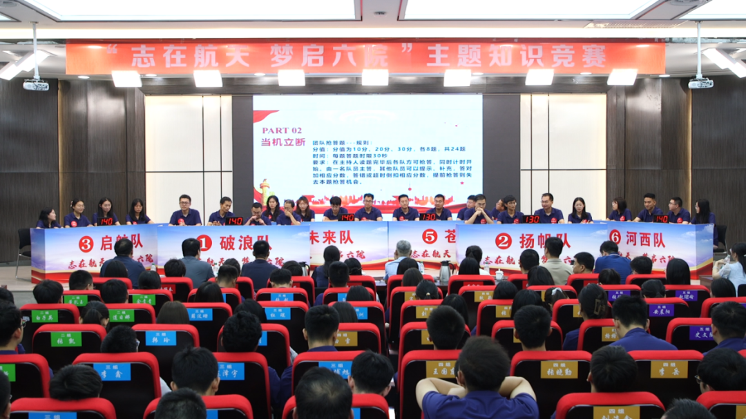 以“志在航天 夢啟六院”為主題的知識競賽順利舉行,標志著新職工培訓正式告一段落。來自六個小組的24名參賽選手入圍緊張激烈的決賽環節。選手們過關斬將,直面必答題、搶答題、風險題等環節的考驗,最終決出一二三等獎。