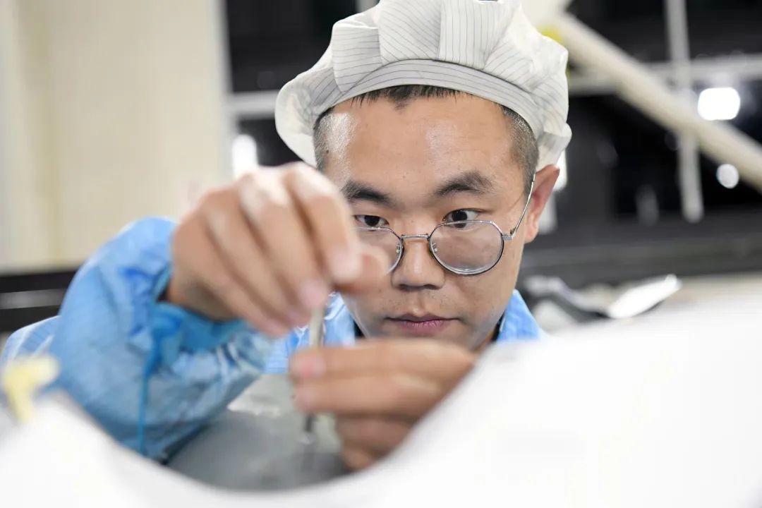 “我們兩個(gè)繼續(xù)組裝,你對(duì)裝好的再檢測(cè)一遍后提交檢驗(yàn)。”“晚走一點(diǎn),把材料烘好,明天白班直接上手干。”他們邊吃邊討論著工作安排。“干!”其中一名生產(chǎn)人員喊了一聲,休息加上用餐時(shí)間不到15分鐘的他們,一起起身朝工位走去。