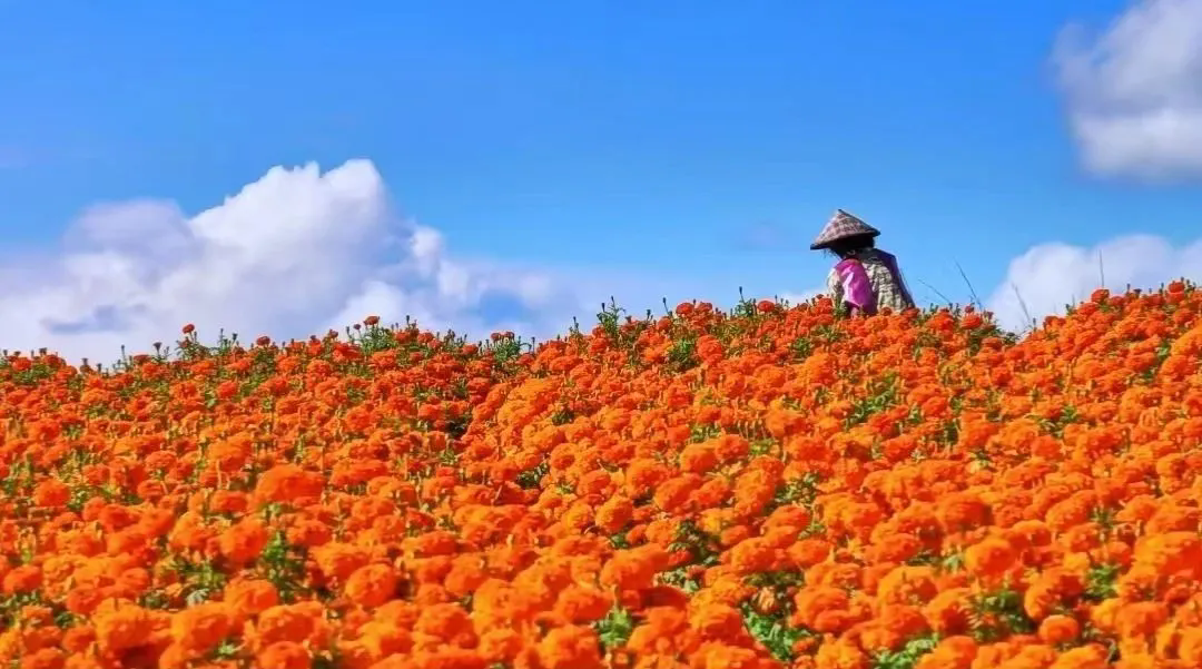 銷路打開,老百姓就得了實惠;民心所向,產(chǎn)業(yè)就迎來了春天。富源縣萬壽菊的種植面積從2023年的兩三千畝增加到2024年的13000多畝。富源縣一位局長此前對萬壽菊的種植持保留和觀望的態(tài)度,2024年,他頻繁前往鄉(xiāng)鎮(zhèn)調(diào)研,回來后激動地和胡副縣長說:“你們是怎么做到的?原來看不到的萬壽菊,現(xiàn)在星羅棋布地遍布全縣大部分鄉(xiāng)鎮(zhèn)!能讓這么多老百姓參與進(jìn)來,說明這個項目得到了老百姓的認(rèn)可,項目的前景一定非常好。”