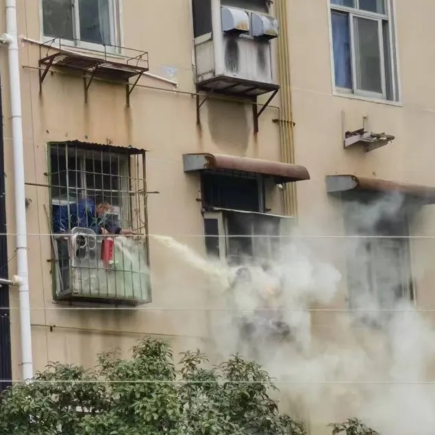 濃煙四散,航天科工九院紅陽公司廠區(qū)與該居民樓僅一墻之隔,運輸管理部梁部長發(fā)現(xiàn)火情后,立刻召集人手。3分鐘內(nèi),8名職工、8瓶干粉滅火器準備就緒,眾人一同奔赴現(xiàn)場。