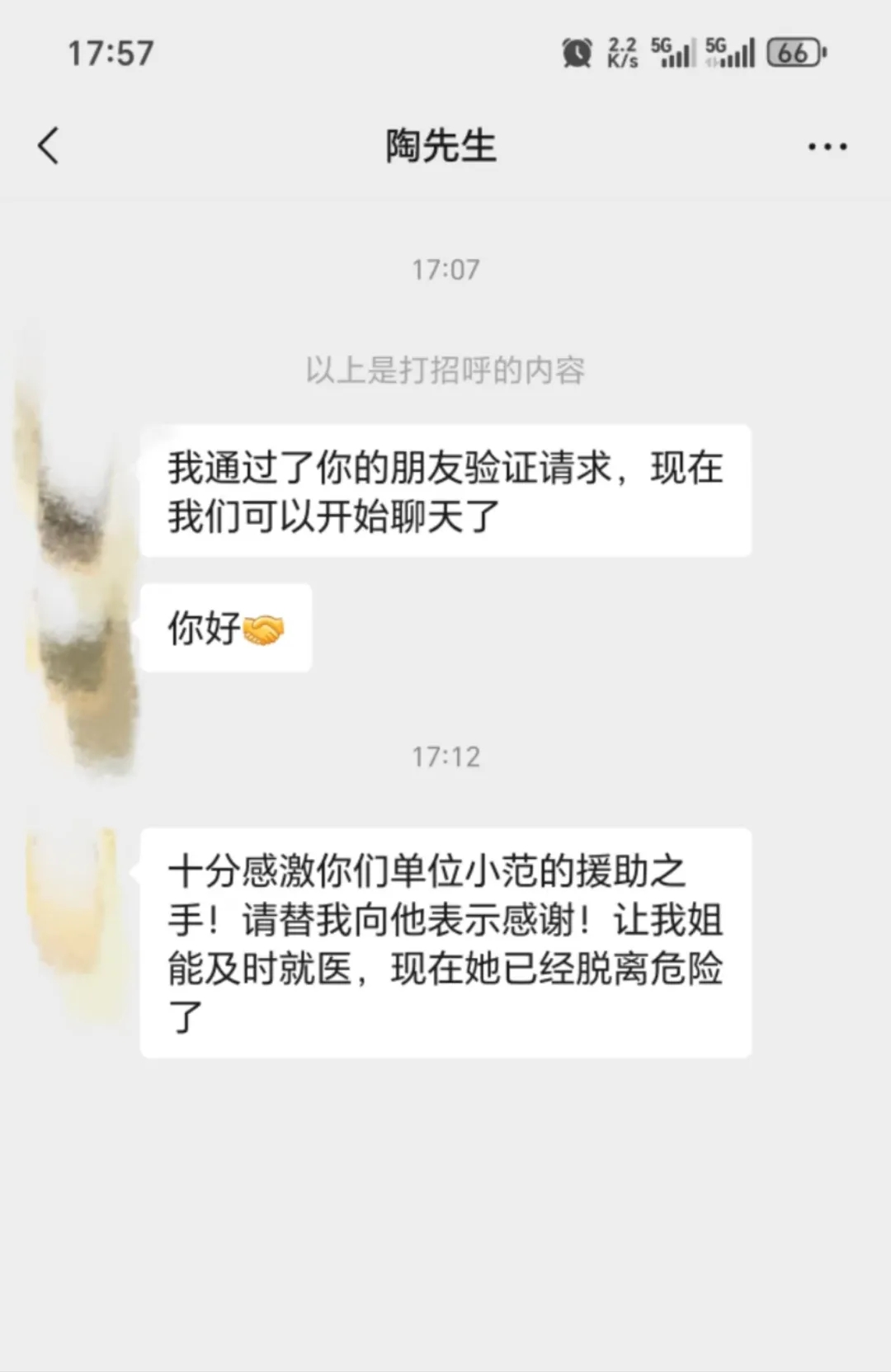救治期間,范愛平通過受傷女子手機聯(lián)系上了家屬,待家屬趕到后,便默默離開重返工作崗位了。