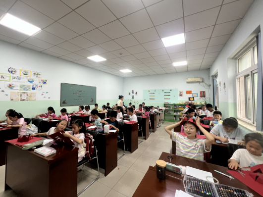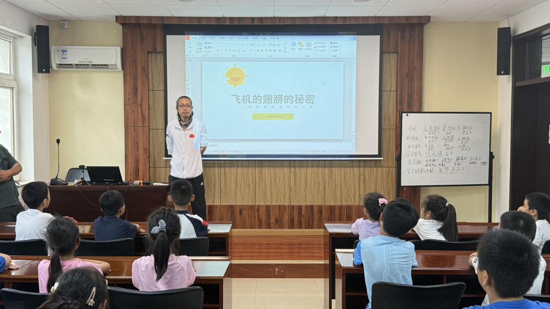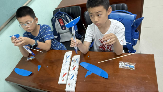 三院暑期托管班精心設計了“科普+藝術+運動”三位一體的課程體系。既有飛航科普、航模制作等特色科技課程,又包含書法、繪畫、繩編等傳統文化體驗,還設置了乒乓球、合作游戲等體育活動。每兩周一次的研學活動更成為亮點,孩子們近距離觀察蜜蜂生態,收獲知識與快樂。